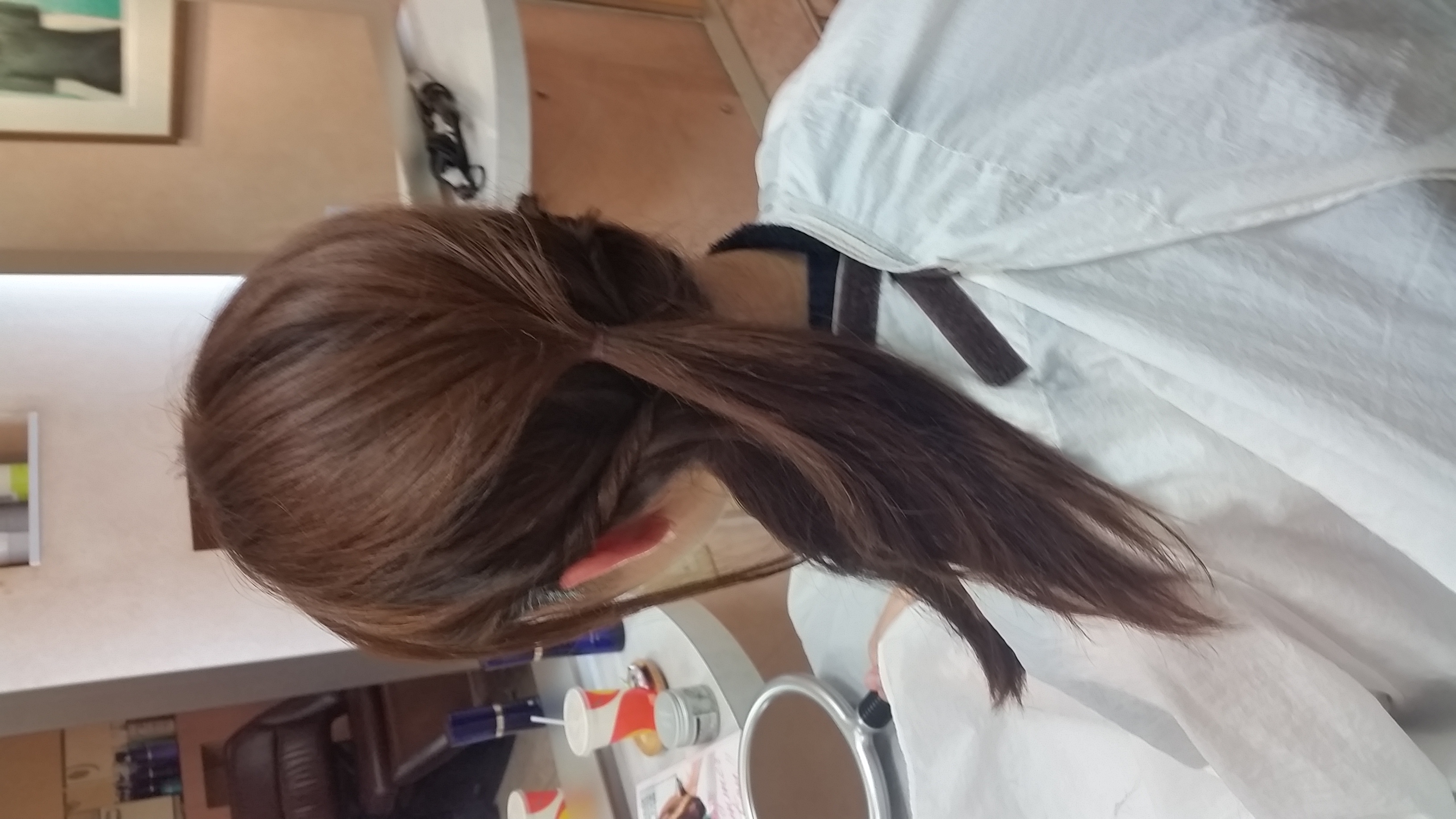 余分な毛先をピンでまとめて完成です!